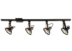 This style of lighting is very common in galleries, and has even become a popular style in homes due to its modern "industrial" look. Consisting of a narrow bar or "track" that runs along a section of the ceiling, and small lamps that fasten into the track, this lighting style is perfect for wall galleries because the lamps can generally be relocated along the length of the track, and often adjusted to many angles, which makes lighting new pieces or rearranging old ones quite simple.