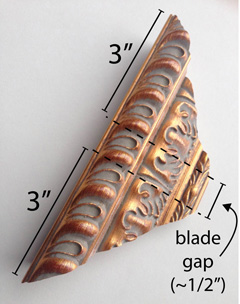 There is also about 1/2" of waste at the point of each triangle, made by the gap between the saw or knife blades (blade gap). This measurement depends on the miter saw or chopper you are using, but should not be more than 1/2". If you know your blades have a larger space between them, make sure you allow for this in your order.