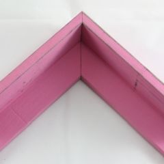 This deep L-shaped canvas floater, features distressed wood, lightly coated in pink paint, revealing light peeks of black, perfect for a rustic style.